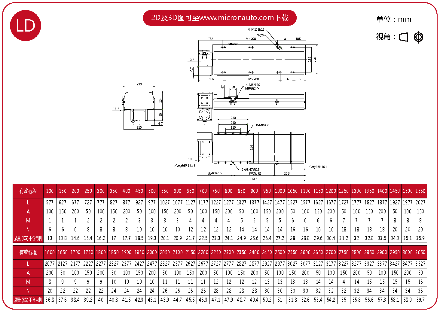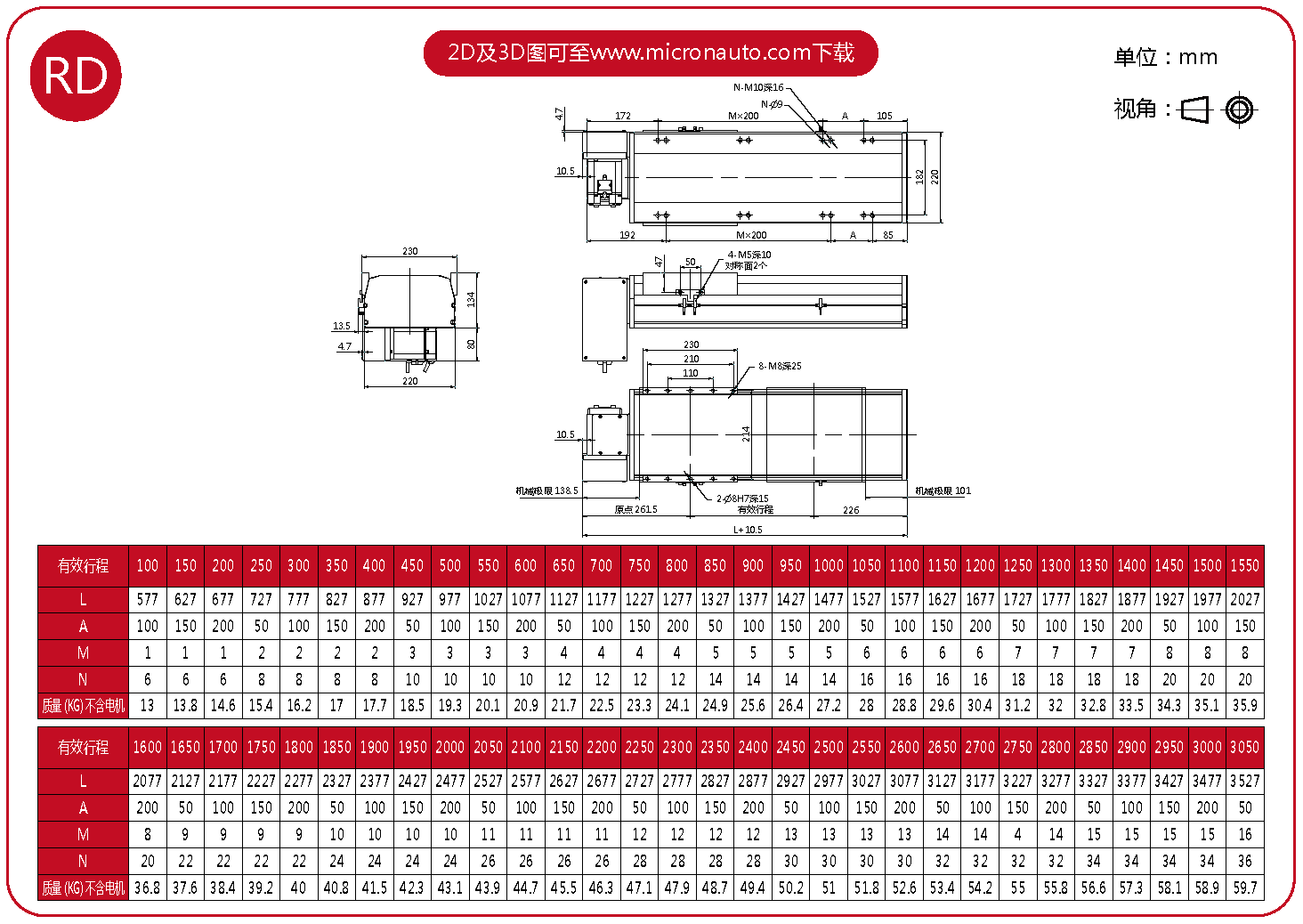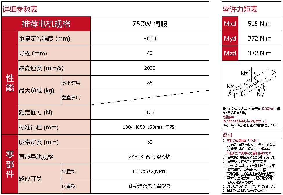 標(biāo)準(zhǔn)有效行程: 100~4050mm(間隔50mm)